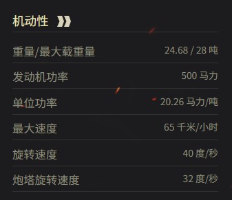4、坦克的發(fā)動(dòng)機(jī)為500馬力可以提供高達(dá)65千米每小時(shí)的速度。