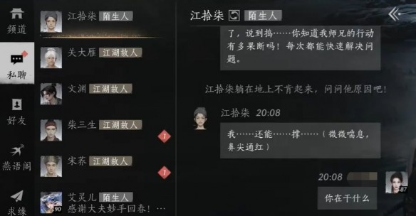 以上就是小編為玩家們帶來的燕云十六聲江拾柒對話結交攻略,玩家們只需要問問他干嘛要這樣獲得原因就可以成功結交了。