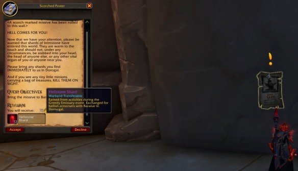 獄石碎片是魔獸世界11.1.7版本中加入的一個貨幣,那么這個貨幣要怎么獲得呢?作為貪婪的特使的活動貨幣,玩家可以通過參與這個活動,完成任務(wù)或是擊殺藏寶地精來獲得這個貨幣,兌換貪婪的特使的活動獎勵。