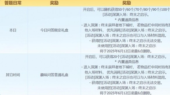 1、活動期間通過答題獲的禮盒和道具將于2025年6月12日凌晨6點刪除,請注意使用。