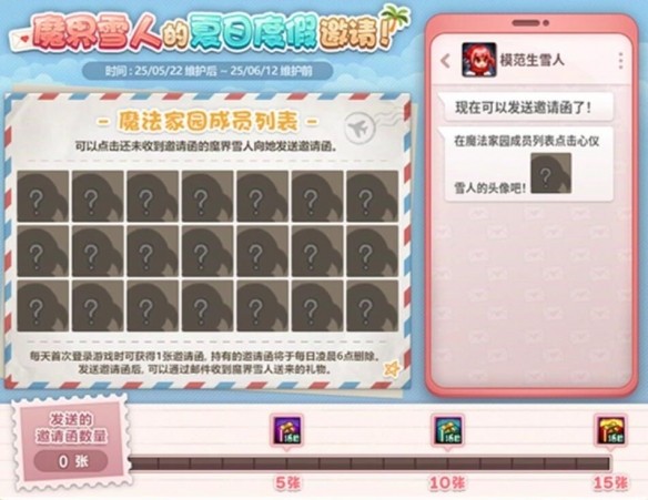 1、活動期間每天有一次給魔界雪人魔法師發送邀請的機會;
