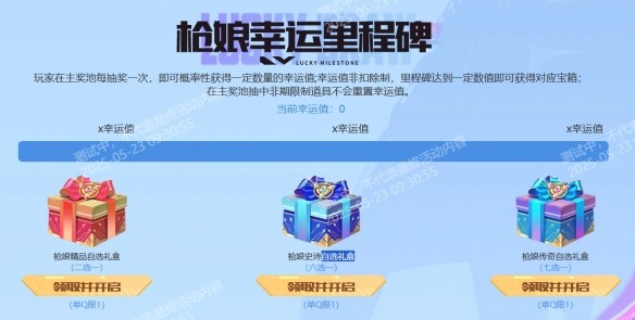 3、抽獎可以獲得幸運值,當玩家獲得指定的幸運值數量就能夠領取自選禮盒,并且從中選擇需要的道具。