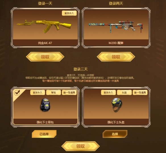 穿越火線上線全新純金豪禮活動,玩家們參與這個活動之后就能夠領取永久版純金AK47,不少還沒有參與活動的玩家們可以參考在下面的活動入口當中及時參與還可以額外領取M200-醒獅、強化下士背包,、強化下士頭盔等道具。