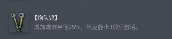 增加觀察半徑25%,坦克靜止3秒后激活。