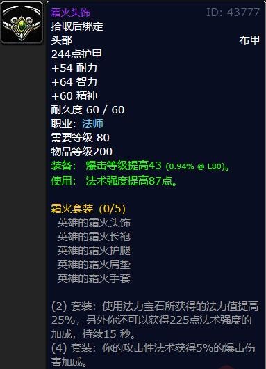 霜火頭飾,法師T3套裝