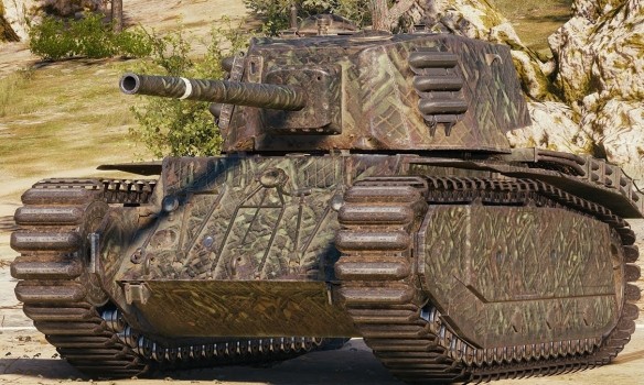 2、坦克底盤融合了夏爾B1重型坦克、夏爾G1中型坦克以及FMC F1超重型坦克等元素。