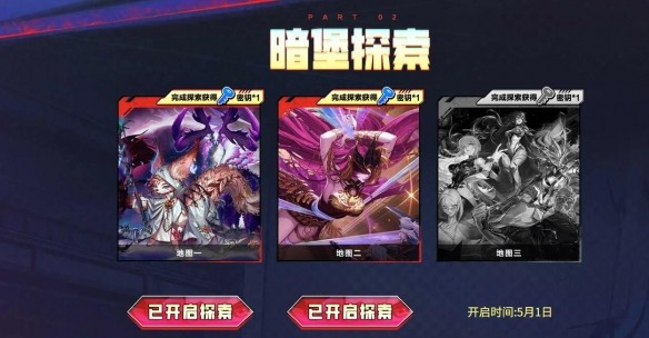 2、在下方頁面還有三張地圖,完成地圖的探索會獲得對應的密鑰,破解密鑰后能獲得獎勵;