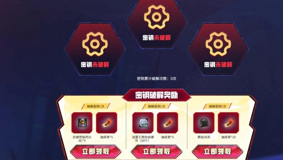 3、累積破解密鑰1/2/3次即可領取抗疲勞秘藥、抽獎券、黑鉆30天等獎勵;