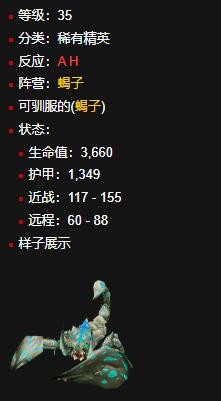 3、邪刺恐蝎是一只35級的稀有精英怪,可馴服。