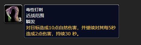 對敵人造成10點自然傷害,并持續對其每5秒造成2點傷害,該效果持續30秒。