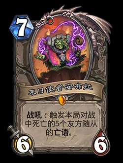 立即登錄爐石傳說,領取神秘莫測的傳說卡牌“末日使者安布拉”*!在她的古老秘術的幫助下,你將釋放出怎樣毀滅性的亡語效果?