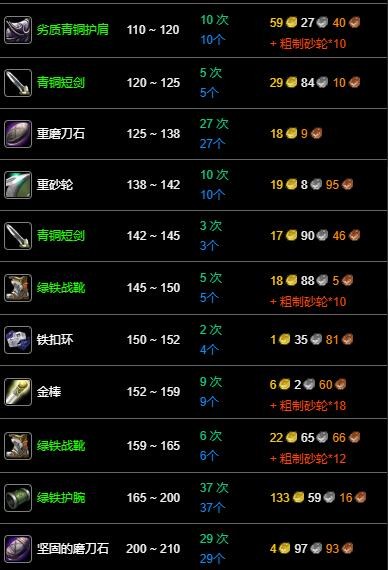 110~120:劣質(zhì)青銅護(hù)肩(粗制砂輪*1+青銅錠*5)