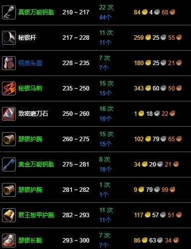 235~250:秘銀馬刺(秘銀錠*4+堅(jiān)固的砂輪*3)