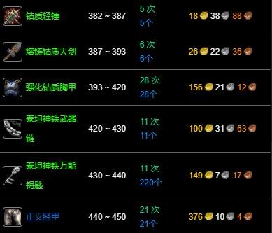 430~440:泰坦神鐵萬能鑰匙(薩隆邪鐵錠*4+薩隆神鐵錠*1)
