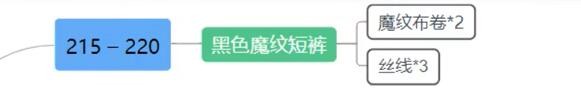 需要2魔紋布卷+3絲線制造出黑色魔紋短褲。