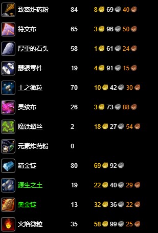 wlk工程225-350最省材料攻略數據以五區 紅玉圣殿 部落為例,其他區服請參考:WLK專業技能沖級寶典
