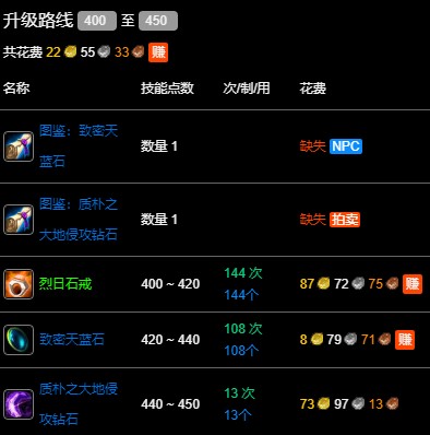 wlk珠寶400-450最省材料攻略數據以一區 吉安娜 部落為例,其他區服請參考:WLK專業技能沖級寶典