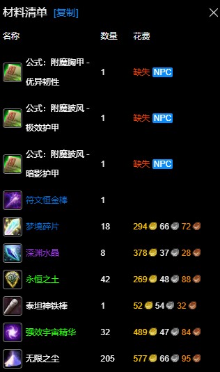 以上就是魔獸世界wlk附魔425-450沖級攻略,先去找到圖紙,再去收集材料就可以制作了。
