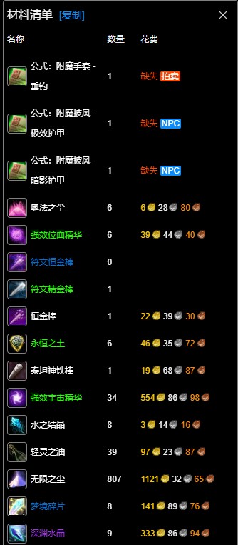 以上就是魔獸世界wlk附魔375-450最省材料攻略,提前采購好所需材料,屆時即可快速制作。