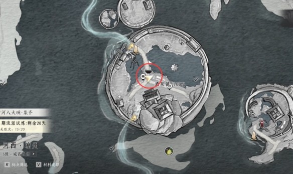 燕云十六聲薄命休長命任務攻略1、玩家先傳送到酒泉鎮,然后前往地圖左下角這里。