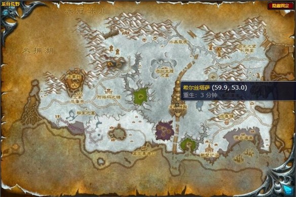 2、在這里的【59.9,53.0】坐標位置可以找到龍眠聯軍軍需官希爾絲塔薩。