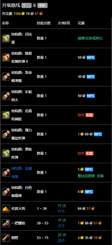 以上就是wlk工程1-400最省材料攻略,升級所需的材料相對較少,大家可以參考制作。