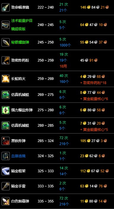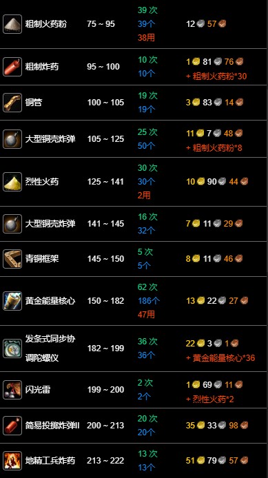 wlk工程1-400最省材料攻略1~39:劣質火藥
