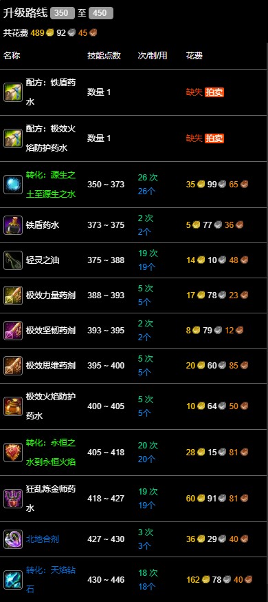 《魔獸世界》wlk煉金350-450最省材料攻略