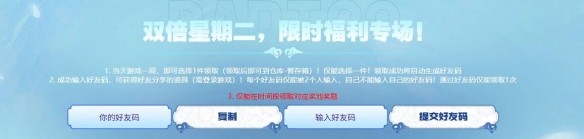 穿越火線雙倍星期二活動當中輸入好友的好友碼可以領取豐厚的獎勵,小編也是為玩家們整理了最新的好友碼,玩家們可以參考在活動當中輸入就能夠領取到好友分享的道具了。