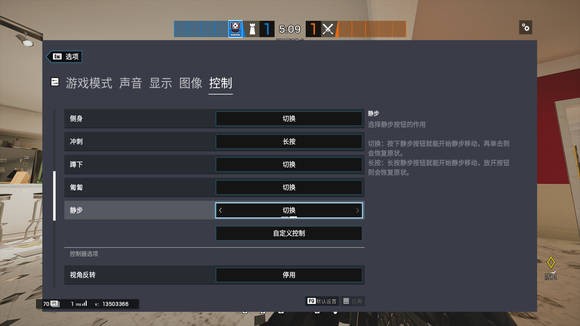 2、如果玩家想要修改靜步按鍵,也可以在游戲設置內的自定義控制中修改。