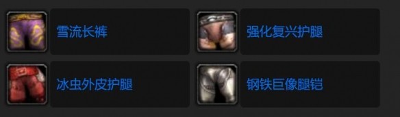 任務獎勵:【雪流長褲】、【冰蟲外皮護腿】、【強化復興護腿】、【鋼鐵巨像腿鎧】從中選一。