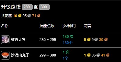 烹飪280-300沖級路線: