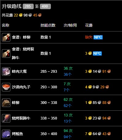 《魔獸世界》wlk烹飪285到400沖級攻略
