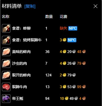 以上就是魔獸世界wlk烹飪285到400沖級攻略,這些肉需要通過釣魚、打怪、開箱等方式獲得。