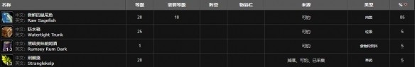 包含:新鮮的鼠尾魚(yú)、防水箱、黑暗美味朗姆酒、荊棘藻