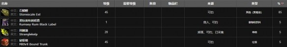 包含:石鱗鰻、黑標(biāo)美味朗姆酒、荊棘藻、秘銀箱