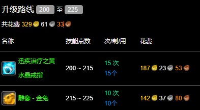 魔獸世界wlk珠寶200-225最省材料攻略升級起來很簡單,只需要制作迅疾治療之黃水晶戒指和金兔雕像就可以了。原材料也很好收集,大家可以多攢一點(diǎn),等到了對應(yīng)等級后就可以立即制作了。