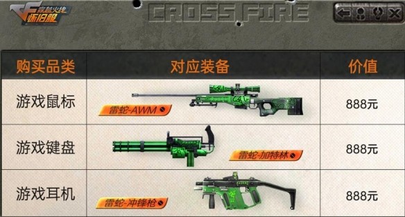 穿越火線與雷蛇進行了一次聯動,本次的聯動當中玩家們可以參與活動然后購買雷蛇的外設就有機會獲得雷蛇聯動的加特林、沖鋒槍以及AWM等,具體的活動內容可以在下面進行參考。