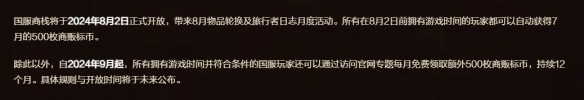 2、由于國服正式服商棧系統(tǒng)將在2024年8月2日上線,所以國服是在每個月的2號輪換商棧的商品;