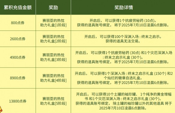2、在活動(dòng)開始到7月3日5:59期間還會(huì)開啟充值獎(jiǎng)勵(lì)活動(dòng);