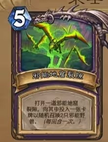 5費(fèi),打開一道邪能地窟裂隙。向其中投入一張卡牌以隨機(jī)召喚2只邪能野獸。(每回合一次。)