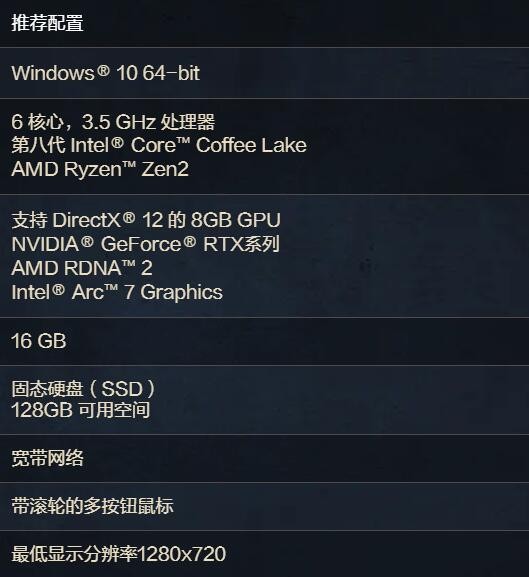 顯卡:支持 DirectX® 12 的 8GB GPU、NVIDIA® GeForce® RTX系列、AMD RDNA™ 2、Intel® Arc™ 7 Graphics