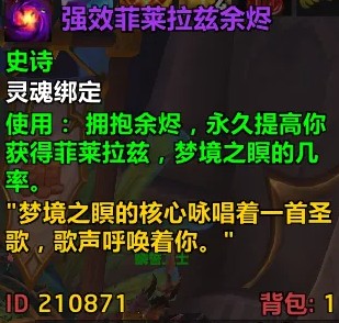 3、巨龍版本,為傳說武器添加了保底機制,也就是說,打菲萊克如果沒掉落個人拾取的菲萊拉茲,夢境之瞑,會補償玩家一個叫做菲萊拉茲余燼,并且分為不同的難度,隨機,普通,英雄,史詩。
