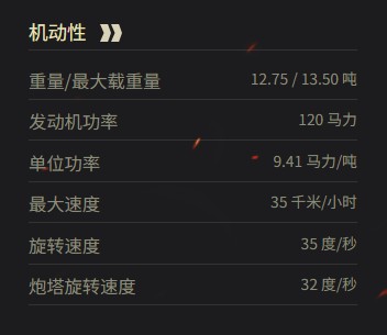 4、坦克的發(fā)動(dòng)機(jī)為120馬力可以提供高達(dá)35千米每小時(shí)的速度。