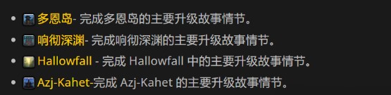 2、在地心之戰中,玩家的第一個角色必須按照多恩島、鳴響深淵、隕圣峪、阿茲·卡赫特的順序來完成對應的主線劇情進行升級。