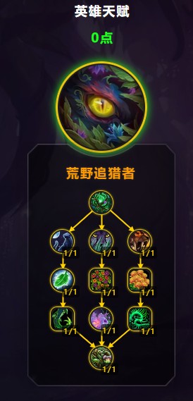 英雄天賦選擇荒野追獵者,詳細技能選擇如下圖所示。