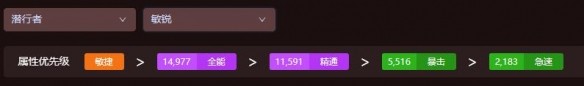 敏捷>14,977全能>11,591精通>5,516暴擊>2,183急速