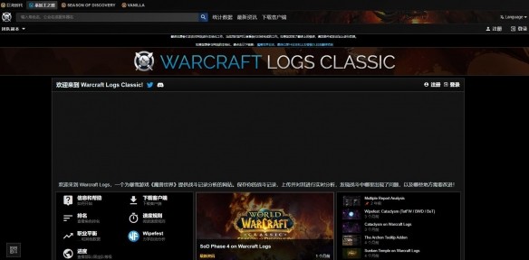 1、點(diǎn)擊上方鏈接后可進(jìn)入wcl中文官網(wǎng)懷舊服版本(想確定是否是懷舊服的玩家可點(diǎn)左上角切換);