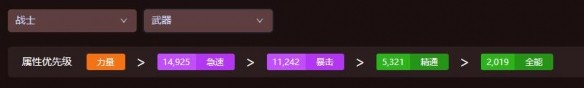 力量永遠是防戰的第一選擇,隨后武器的優先級選擇急速,可以增加自己嘲諷和防御的效率,副屬性為全能,玩家在選擇裝備時盡可能選擇急速和全能加成較高的裝備。