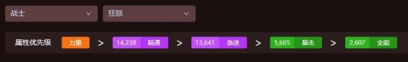 首先選擇力量,提升自己的傷害,隨后選擇急速,急速能夠顯著提升技能的釋放頻率和攻擊速度,從而增加整體傷害輸出,接著選擇精通,精通對于狂暴戰來說也是非常重要的屬性,它能夠提高技能的傷害效果。在多個討論中,精通都被視為優先級較高的屬性。
